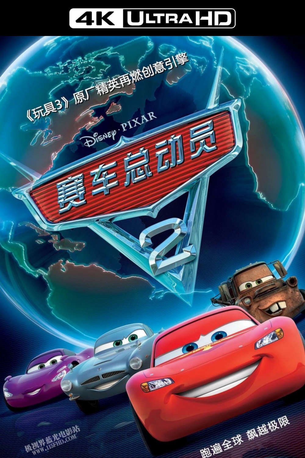 开发出新能源的迈尔斯伯爵召开世界杯赛车大奖赛,各路好手纷纷云集,独独缺了活塞杯霸主闪电麦昆(黄磊 配音)。原来他刚好回到温泉镇,与好哥们板牙(范伟 配音)、女友莎莉享受快乐的假期。由于意大利方程式赛车法拉斯·高的挑衅,当然也有吃醋的原因,麦昆最终同意参加世界杯,并带着板 牙等好友一同周游世界。在日本站比赛的前一天,板牙偶然结识了英国特工迈克飞弹和霍莉(姚晨 配音),他们正在追查一支犯罪团伙的新动向。板牙阴差阳错被霍莉当作美国来的接头特工,由此卷入了麻烦之中。在次日的比赛中,麦昆与法拉斯·高竞争激烈,与此同时不断有选手意外爆缸,板牙则撞见迈克和神秘组织火并的场面。