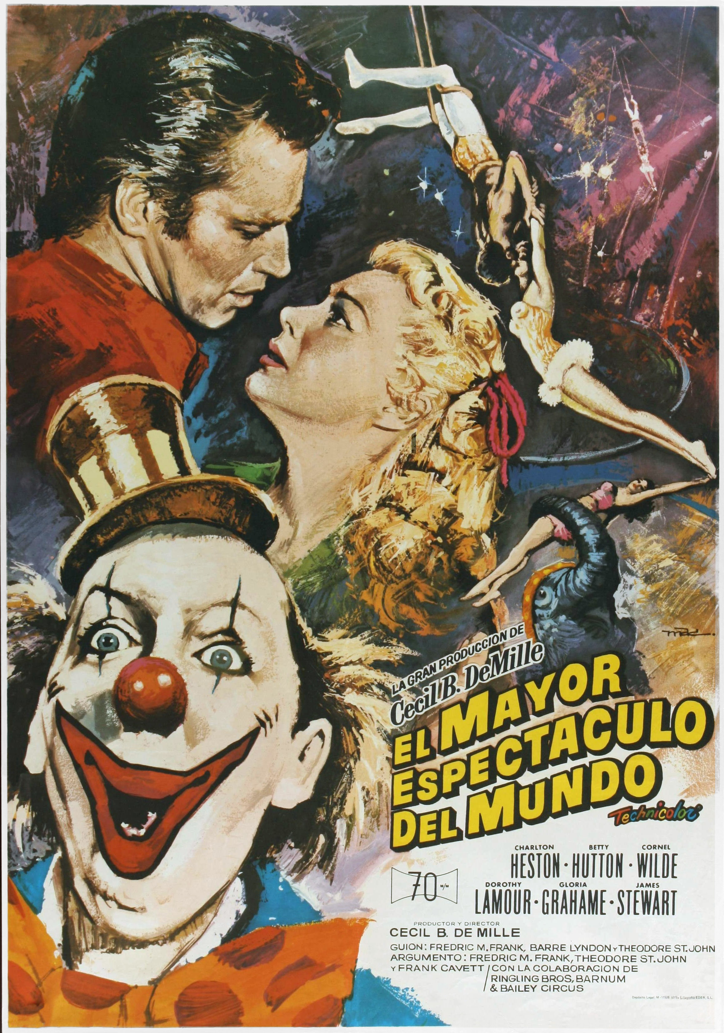 塞西尔.B.戴米尔执导的这部影片,获得第二十五届奥斯卡最佳影片和最佳电影故事两项大奖。面对电视界的蓬勃发展,饱受威协的电影界,在这届选择了一部足以压倒电视气势的超级豪华大制作,作为这一届的最佳影片得主。故事描述一个在财政上出现问题的马戏团,为了让团员继续作一整季的表演,签下了有着名空中飞人圣巴斯蒂安加盟的演出。这使一心想在新一季成名的女空中飞人哈莉大为不满,另外经理布莱特为了事业一直刻意冷落暗恋他的哈莉。蒂安却因一次表演危险性高的动作发生意外,跌断了一只手而断送了表演前途。同时一名十年前失手杀妻的医生以小丑身份在马戏团里表演,后因火车翻覆而救布莱特,被警察发现。哈莉因此而被感动,于是对布莱特重燃爱火,并负起整顿马戏团表演的工作。查尔顿.赫斯登和康奈尔.威尔德的表演相当不错。