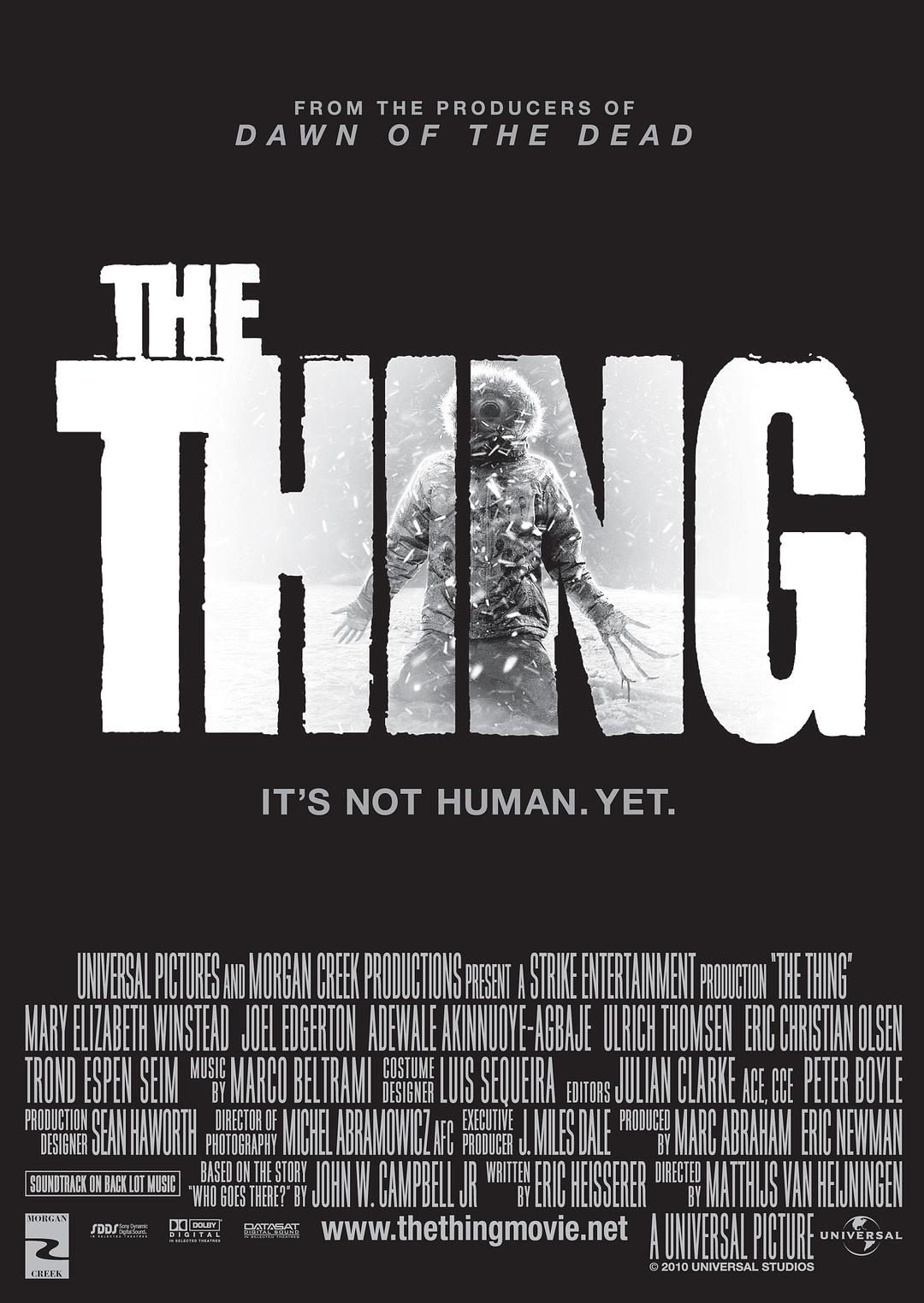 时为1982年,一支隶属挪威的三人南极科考队在冰原中行进,意外发现一艘一百万年前的奇怪船只,并且在附近找到了冻于严冰之中的神秘生物。才貌双全的美国古生物学家凯特·洛伊德(玛丽·伊丽莎白·文斯蒂德 Mary Elizabeth Winstead 饰)在桑德尔·哈沃森博士(Ulrich Thomsen 饰)的邀请下,随同一众科研工作者前往南极。经过认真研究,他们发现这是地球上从未有过的生物。正当科学家们为了这个伟大的发现载歌载舞庆祝之时,神秘生物悄悄解冻,继而向人类展开凶残的袭击。经过一番惨烈的搏斗,怪物最终葬身火海。