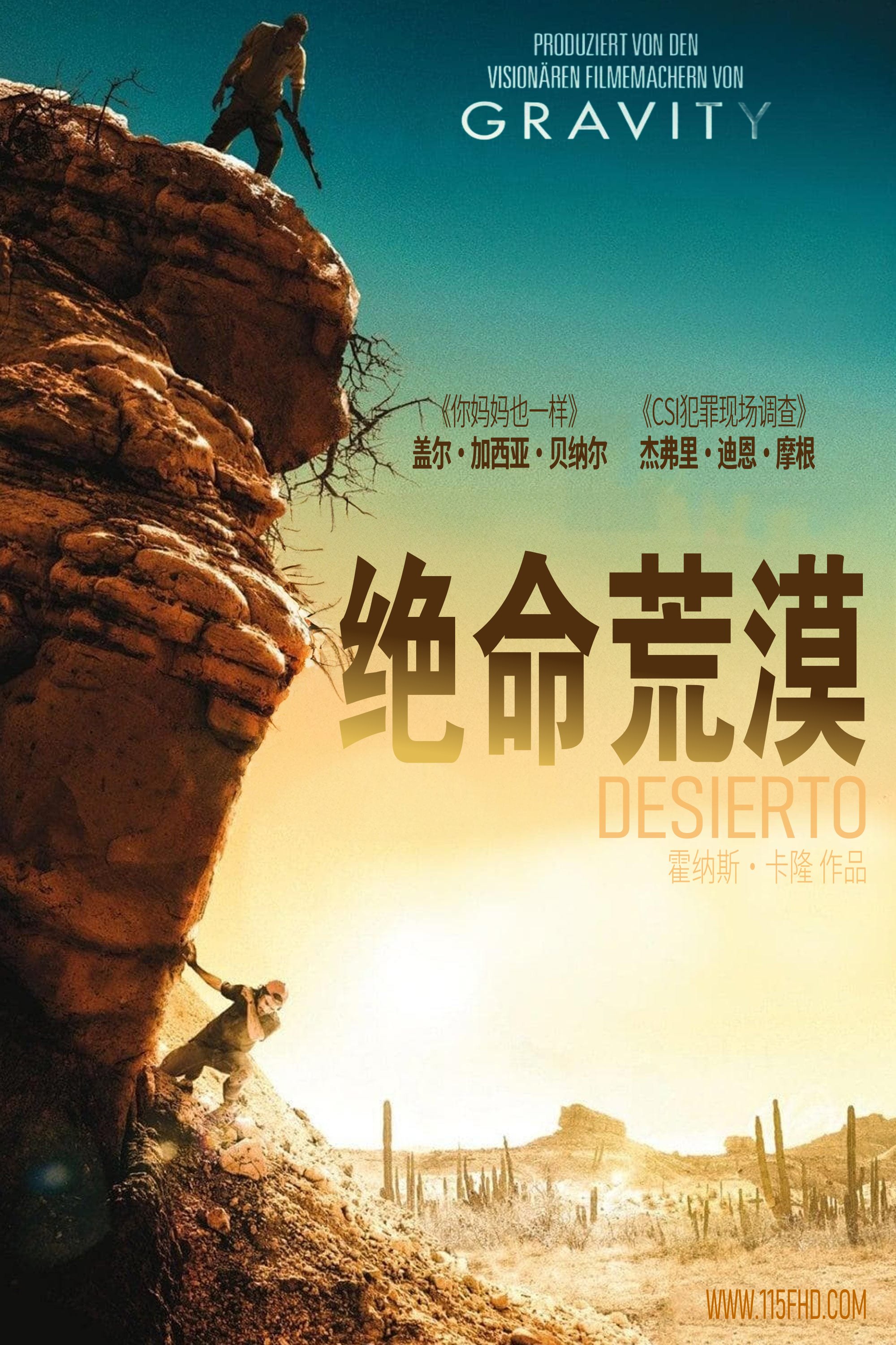 《沙漠》讲述墨西哥非法移民(盖尔·加西亚·伯纳)和美国义务警员(杰弗瑞·迪恩·摩根)之间的猫鼠游戏,影片设定在荒凉的大沙漠,这里美丽的风光与严苛的自然环境正是两位主角内心挣扎的隐喻。©115FHD蓝光原盘电影分享站【www.115fhd.com】