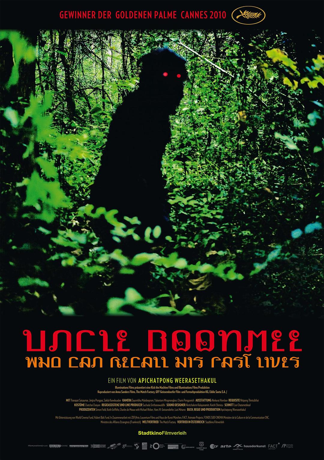 布米叔叔(Thanapat Saisaymar 饰)得了急性肾衰竭,因此回到乡里,边静养边等待死神来临。在乡下,他每天安静的吃饭、纳凉、看家人劳作,一个清凉的夏夜,布米叔叔、侄子和妻妹在院子里吃饭闲聊,布米叔叔去世很久的妻子竟然出现了,和他们诉说近况和多年思念,稍后,布 米叔叔失踪很久的儿子也出现了,变成了一只红眼黑毛猩猩,却没有人受到惊吓。阴阳相隔的几个人平静地拉着家常,平静的果园,平静的微风,蜜蜂每日平静的劳作,发生的一切事情都那么自然,每个风景都早在那里了,每个故事都像一个梦……©115FHD蓝光电影分享站【115fhd.com】