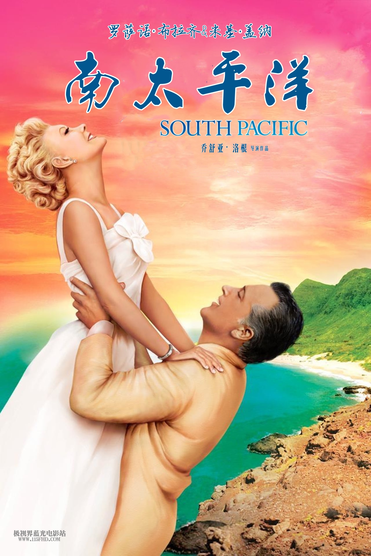 《南太平洋》背景为二次世界大战美国海军占领南太平洋一小岛之时;岛上最有钱的迪贝克战前已前土著女子结婚生下两子,但孩子的母亲去世得早。海军少尉护士奈莉.佛布许来自保守的阿肯色州小镇,爱上了迪贝克,但因为其二个混血儿拖油瓶,不禁略略犹疑。她对迪贝克倾心不已,但面对母亲严来信,只得狠心拒绝。岛上另外一个大出风头的人物是万事通型的“血腥玛丽”广受美国驻军欢迎;一个来自费城的盖博中尉对玛丽的女儿莉亚深有好感,但是也顾虑其土著身份;玛丽以一首小岛情歌替女儿做了媒,使盖博捐弃了成见,热情挥洒热情。但随着两段异国恋情越形白热,结婚成家的压力也越来越明显;迪贝克在向奈莉求婚被拒后自愿与盖博深入战区探军情;盖博中弹身亡,迪贝克亦一度失踪,使得奈莉认清她对迪贝克的感情;她日夜陪伴迪贝克的幼子女,与他们培养出感情,更对自己将迪贝克逼上敌阵后悔不已。幸亏迪贝克安然返归,有情人终成眷属。©115FHD蓝光电影分享站【115fhd.com】