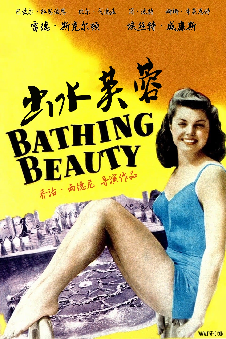 流行音乐作曲家史蒂夫(Red Skelton)在加州与美丽多情的大学游泳课老师卡罗琳(Esther Williams)一见倾心,两人谈婚论嫁之际,遭到唱片公司高层的反对,他们怕影响到史蒂夫为“水上盛典”作曲,但史蒂夫无视阻挠。史蒂夫的经纪人乔治雇用女演员玛丽娅假冒史蒂夫的妻子,后者带着三个假冒的孩子来到婚礼上大闹,卡罗琳一气之下出走,史蒂夫得知卡罗琳任教的学院虽是女子学院,但章程规定也招男生,于是报名入学,笑话自此层出不穷。©115FHD蓝光原盘电影分享站【www.115fhd.com】