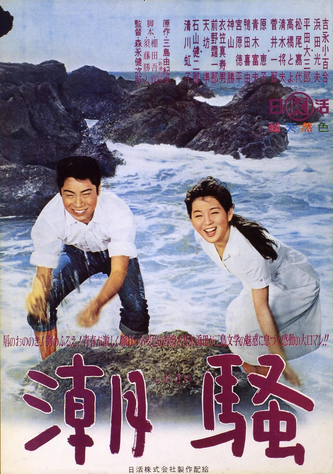 歌岛渔村,19岁穷苦渔民新治(滨田光夫 饰)出海归来,在晚霞海岸看见富商寄养女初江(吉永小百合 饰)——秀发与海风同框,瞬间击中少年心。两人偷偷幽会,被岛上“富二代”安夫(石山健二郎 饰)与流言蜚语围堵,初江父亲宫田照吉强行禁足。