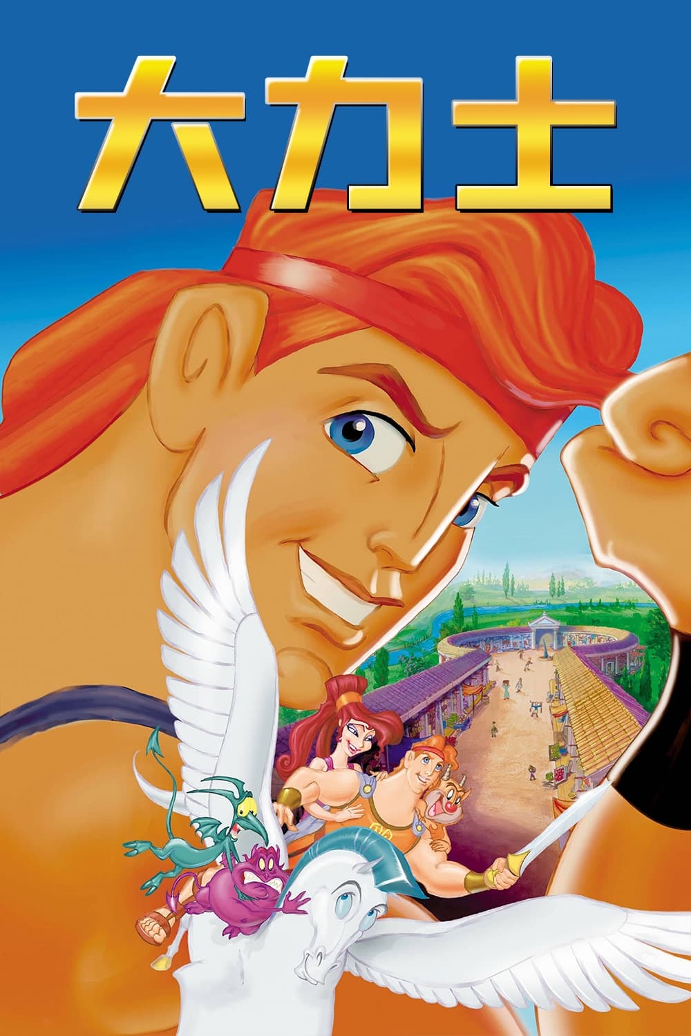 海格力斯(泰特·多诺万 Tate Donovan 配音)是宙斯(雷普·汤恩 Rip Torn 配音)的儿子,天生拥有神力,力大无穷。冥王哈迪斯(詹姆斯·伍兹 James Woods 配音)企图叛变,他将海格力斯视作最危险的敌人,于是借机将他贬为凡人,想就此将他消灭。